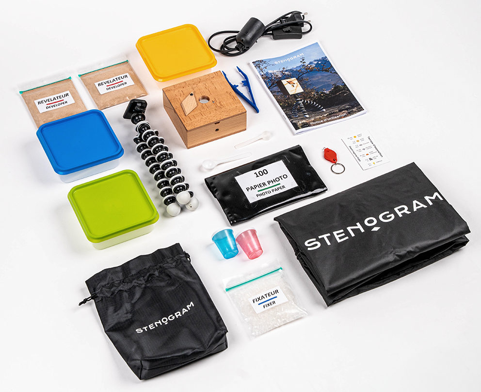 Appareil grand angle en bois de hêtre et de pin pour papier 10x10cm. Fermeture magnétique de l’appareil et de l’obturateur. 4 lignes de visée pour un cadrage optimal. Adaptateur trépied universel.